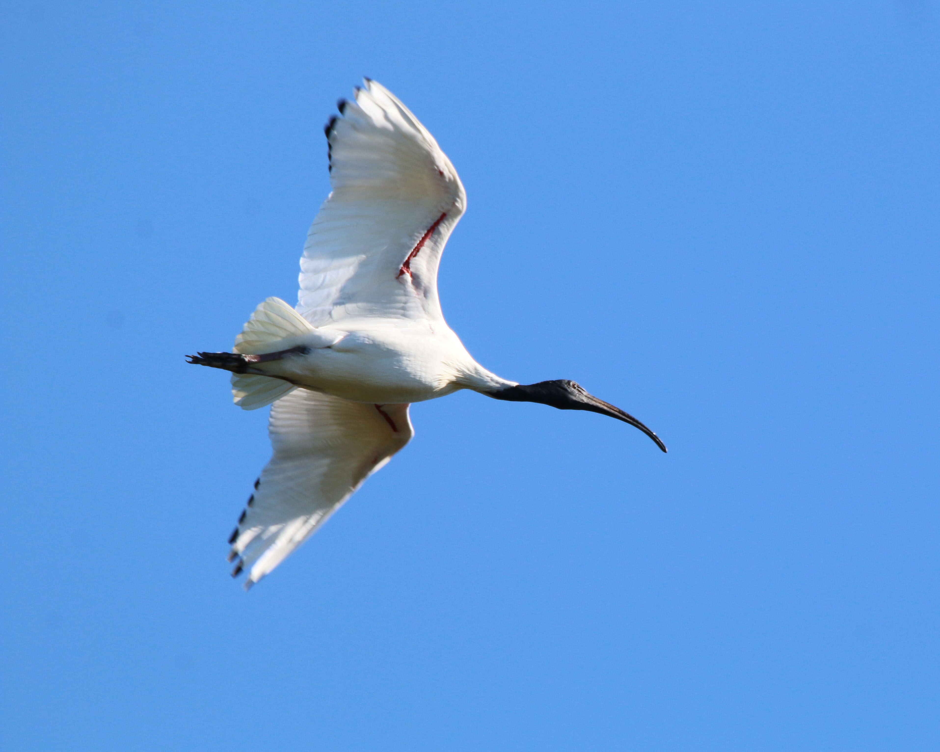 If you see one of these ibis flying overhead, you could be forgiven for thinking they just flew out of the late cretaceous period, as they have a featherless stretch underwing that looks quite reptilian in nature!
